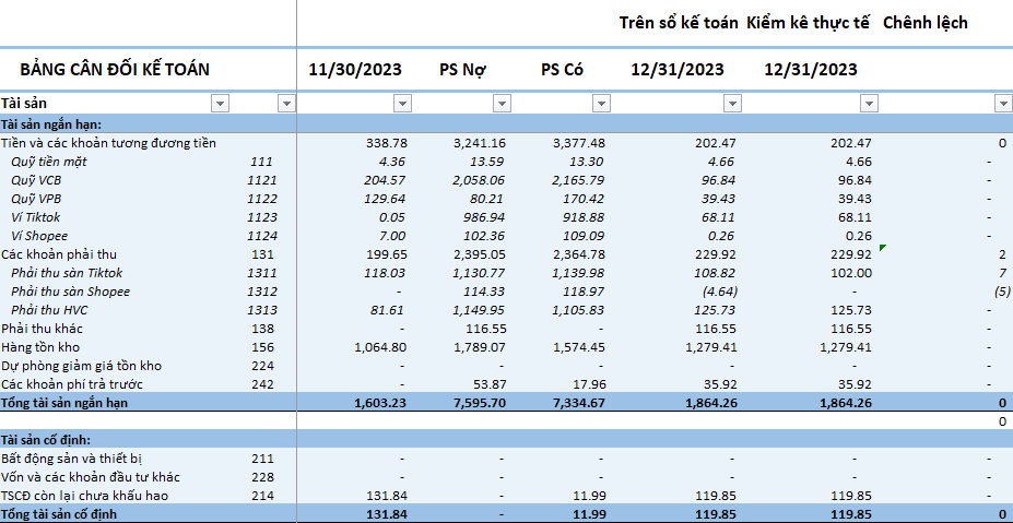 ✅Đối soát công nợ bán hàng (sàn TMĐT, HVC) ✅Đối soát công nợ nhập hàng. ✅Tổng hợp, phân loại thu chi theo Khoản mục chi phí. ✅Tổng hợp doanh thu bán hàng đa kênh. ✅Hạch toán các nghiệp vụ kế toán bán hàng lên phần mềm kế toán. ✅Xây dựng các báo cáo quản trị nội bộ bằng phần mềm kế toán chuyên dụng. ✅Họp thuyết minh báo cáo quản trị nội bộ với chủ Shop hàng kỳ