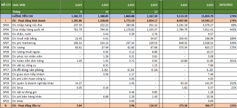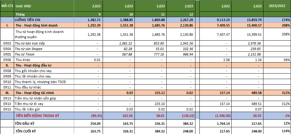✅Tổng hợp thu chi của các Tài khoản ngân hàng, ví sàn TMĐT, ví Hãng vận chuyển, thu chi tiền mặt. ✅Xây dựng Danh sách Khoản mục chi phí phù hợp với hoạt động của Doanh nghiệp. ✅Phân loại thu chi theo Khoản mục chi phí. ✅Tổng hợp doanh thu bán hàng đa kênh. ✅Lập báo cáo kết quả hoạt động kinh doanh (P/L). ✅Lập báo cáo dòng tiền (mẫu cơ bản).