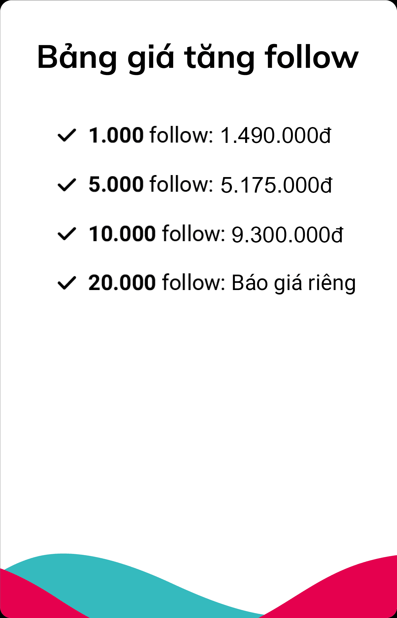 Giá đã bao gồm VAT Đối tượng follow từ 18 tuổi trở lên (tại Việt Nam)